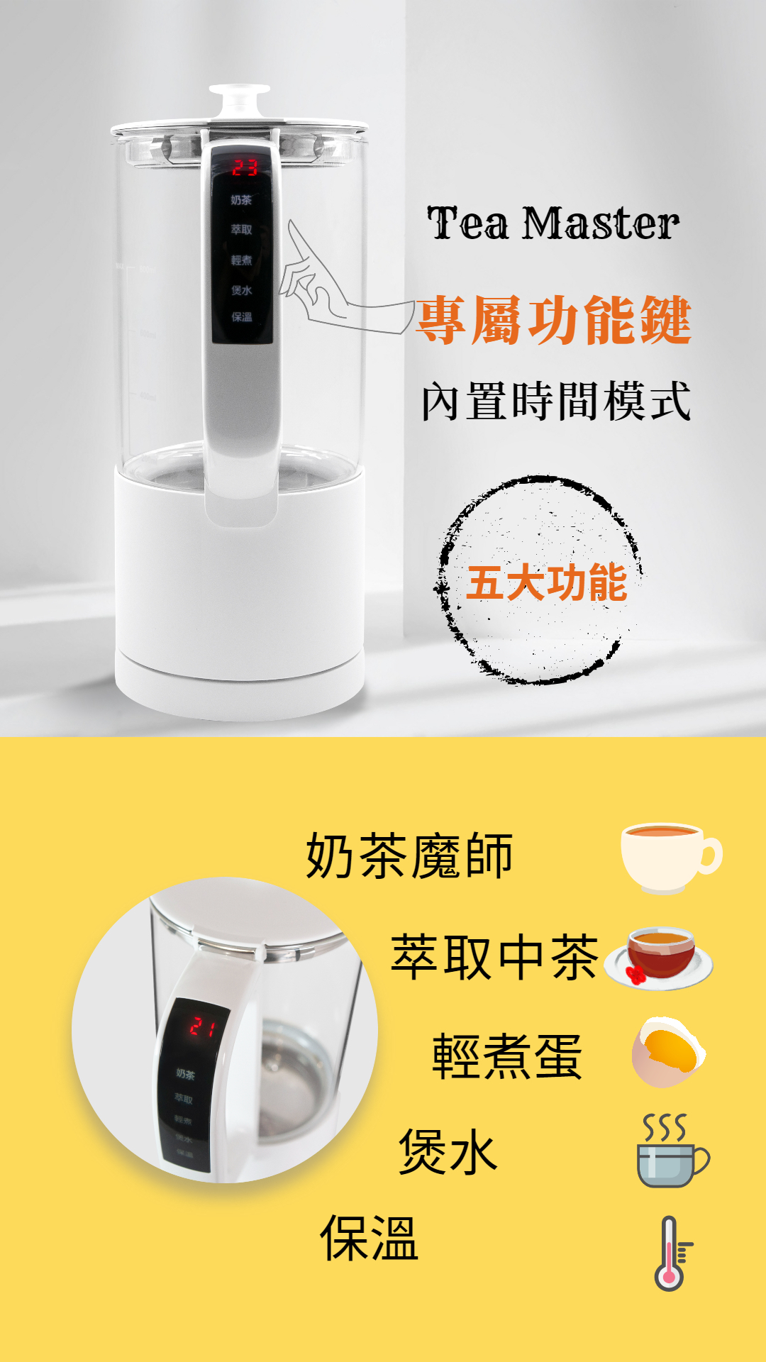 TEA MASTER功能多多,不但能煮地道中茶及西茶,還能為您煮蛋。